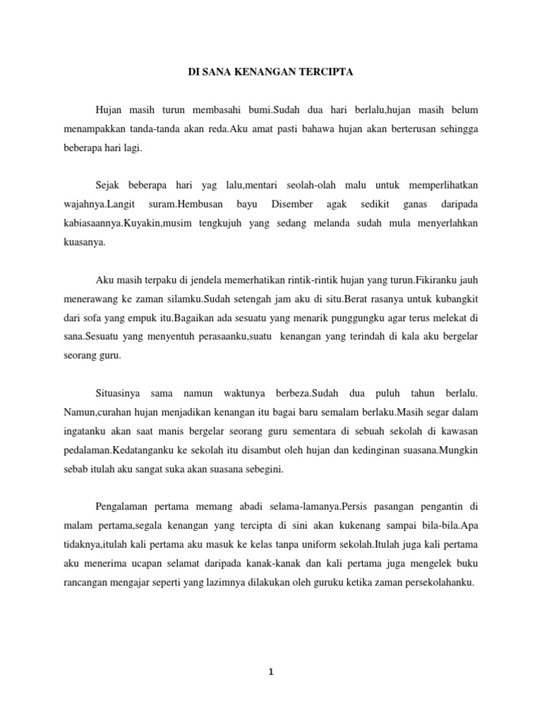 Catatan Efi Bring world into words Cerita. Cerpen Kehidupan Cerpen Keluarga Cerpen Perjuangan. Seringkali saya akan naik sendirian ke pentas bersalam dengan Ahli Parlimen ketika itu Datuk Mohamed Rahmat untuk menerima hadiah pelajaran.